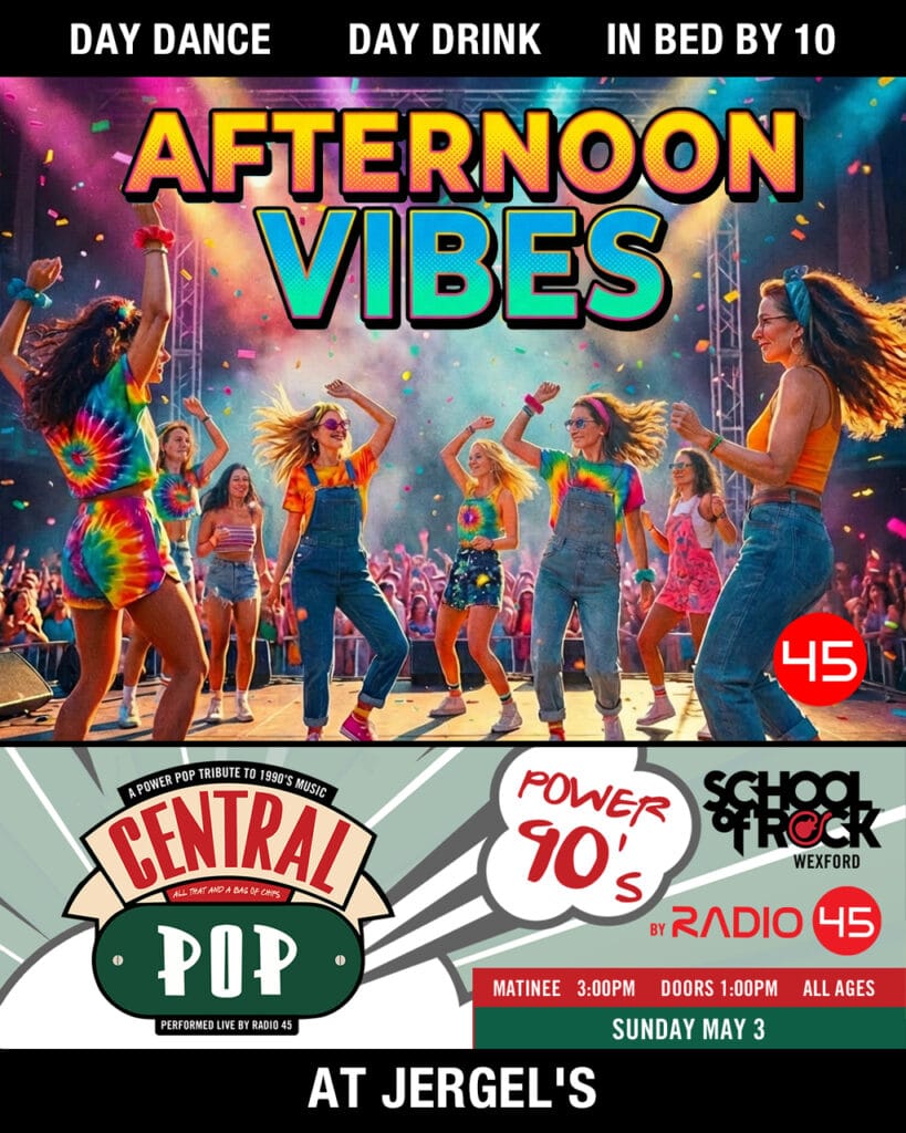 Radio 45 debuts Central Pop, a brand-new, high-energy tribute to the biggest alternative, pop-rock, and power-pop hits of the 1990s—live at Jergel’s Rhythm Grille on Sunday, February 1 with two special shows.