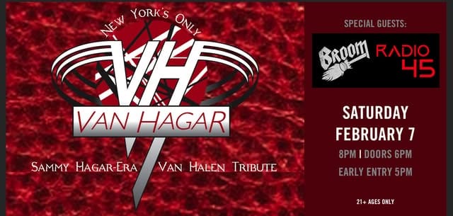 Feb 7 Van Hagar wsg Radio45, Broom 8:00 pm - 11:00 pm Radio 45 Jergel's Rhythm Grille 103 Slade Ln, Warrendale Event Details Get Directions