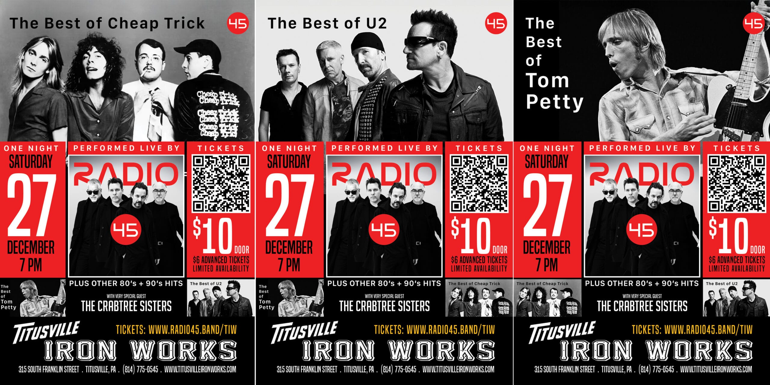Dec 27 Radio 45 Power 80’s and 90’s Hits wsg The Crabtree Sisters @ Titusville Iron Works 6:00 pm - 11:00 pm Radio 45 Titusville Iron Works 315 S. Franklin St., Titusville Event Details Get Directions