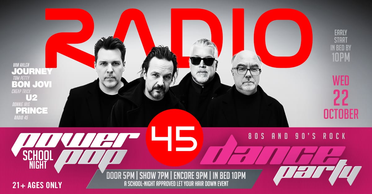 Oct 22 Radio 45’s Power Pop Dance Party 7:00 pm - 10:00 pm Radio 45 Jergel's Rhythm Grille 103 Slade Ln, Warrendale Event Details Get Directions